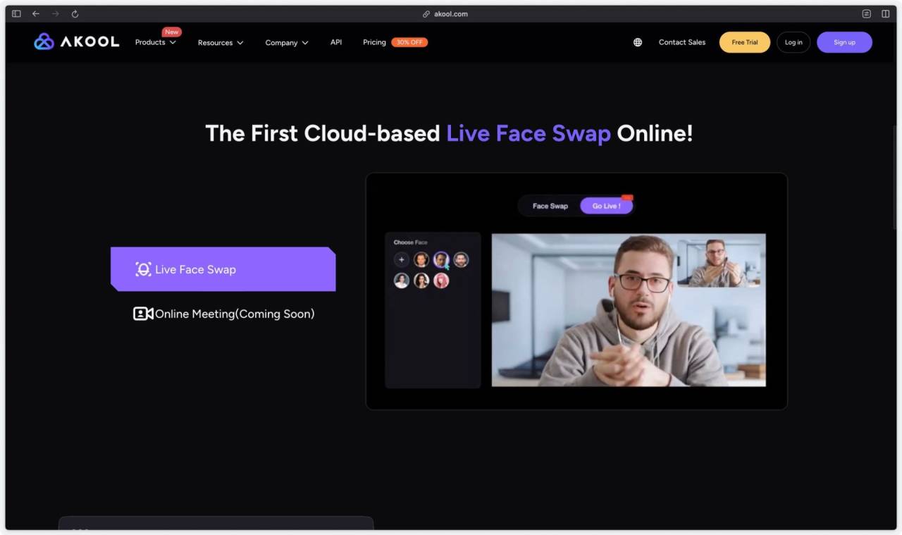 1. AKOOL公式サイトにアクセスし、「Face Swap」を選択